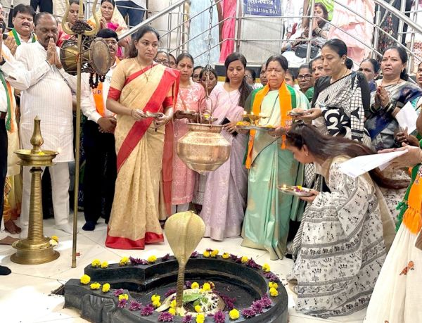 नवी मुंबई : देशाचे पंतप्रधान नरेंद्रभाई मोदी यांच्या संकल्पनेतून तसेच राज्याचे लोकप्रिय मुख्यमंत्री देवेंद्र फडणवीस आणि प्रदेश भाजपाध्यक्ष चंद्रशेखर बावनकुळे यांच्या मार्गदर्शनानुसार पुण्यश्लोक अहिल्यादेवी होळकर यांच्या ३००व्या जयंतीच्या समारोहाची सांगता निमित्त वाशी येथील सेक्टर- ७ जागृतेश्वर शिव मंदीर येथे नवनिर्वाचित नवी मुंबई जिल्हा भाजपाध्यक्ष डॉ. राजेश पाटील यांच्या नेतृत्वात नवी मुंबई जिल्हा भाजपा तर्फे ‘शिव महाआरती' आयोजित करण्यात आली होती. यावेळी आमदार सौ. मंदाताई म्हात्रे यांनी भगवान शंकराची ‘महाआरती' केल्यानंतर भगवान शंकराच्या नथमस्तक होऊन पूजा अर्चा केली.