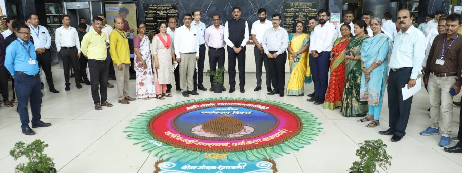 या अनुषंगाने ‘पर्यावरण दिन'चे औचित्य साधून महापालिका मुख्यालयात रंगावली साकारताना आयुक्त डॉ. कैलास शिंदे यांच्या मार्गदर्शनाखाली बीज मोदक रंगावलीची संकल्पना राबविण्यात आली.