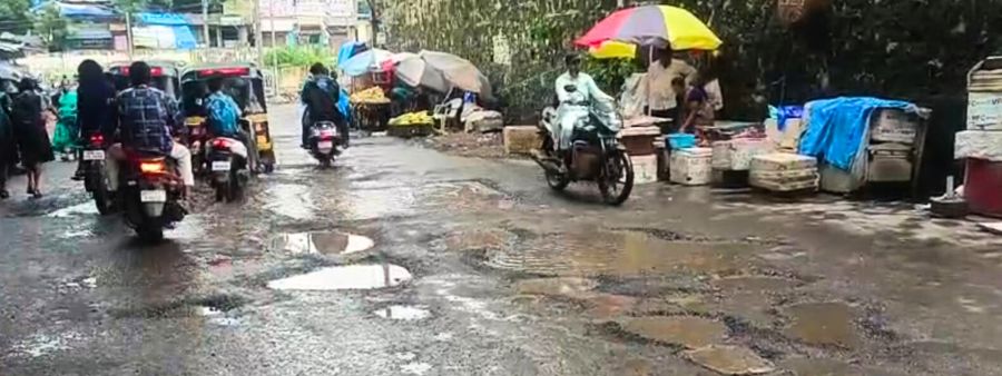 मोहने ते अंबिवली रेल्वे स्टेशन रस्त्यावर खड्ड्यांचे साम्राज्य