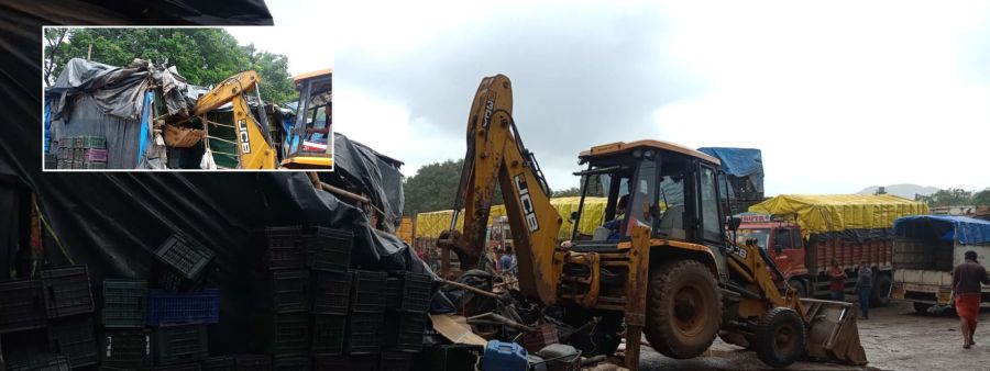 तुर्भे येथील सिडको ट्रक टर्मिनल मधील अनधिकृत गोडाऊनवर बुलडोझर
