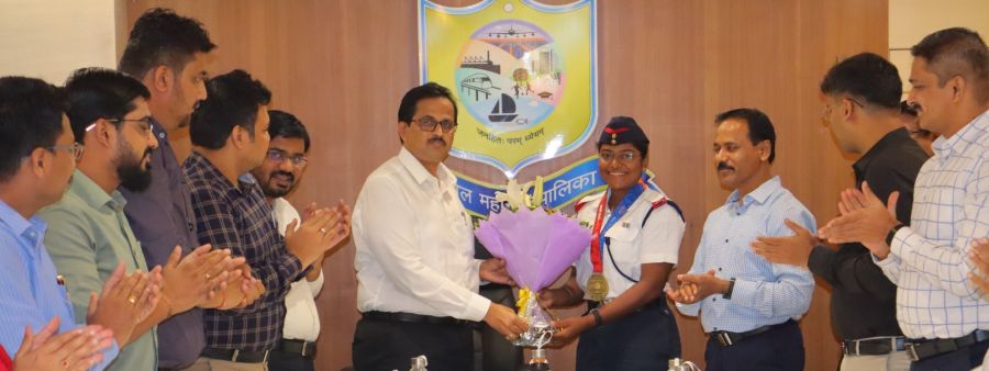 पनवेल : जागतिक पोलीस-अग्निशमन स्पर्धा २०२५ मध्ये ऐतिहासिक कामगिरी केल्याबद्दल पनवेल महापालिका अग्निशमन दलातील अग्निशामक शुभांगी घुले यांचा आयुक्त मंगेश चितळे यांनी पुष्पगुच्छ देऊन सत्कार केला. पनवेल महापालिकेचे नाव जागतिक स्तरावर उज्वल केल्याबद्दल आयुक्त चितळे यांनी घुले यांचे अभिनंदन केले.