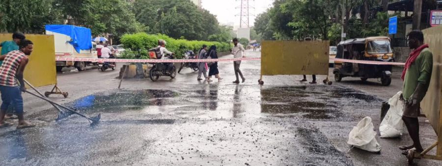 युध्दपातळीवर खड्डे बुजविण्याचे काम सुरु