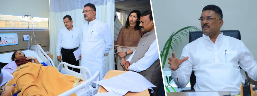 वसई : वसई-विरार महापालिका हद्दीतील नारंगी रोड, विरार (पूर्व) येथे रमाबाई अपार्टमेंटचा भाग कोसळून झालेल्या दुर्घटनेतील जखमींची परिवहन मंत्री प्रताप सरनाईक यांनी प्रकृती रुग्णालय, विरार (पश्चिम) येथे भेट घेऊन जखमींच्या आरोग्याची माहिती जाणून घेतली. तसेच त्यांच्या नातेवाईकांशी संवाद साधून दिलासा दिला.