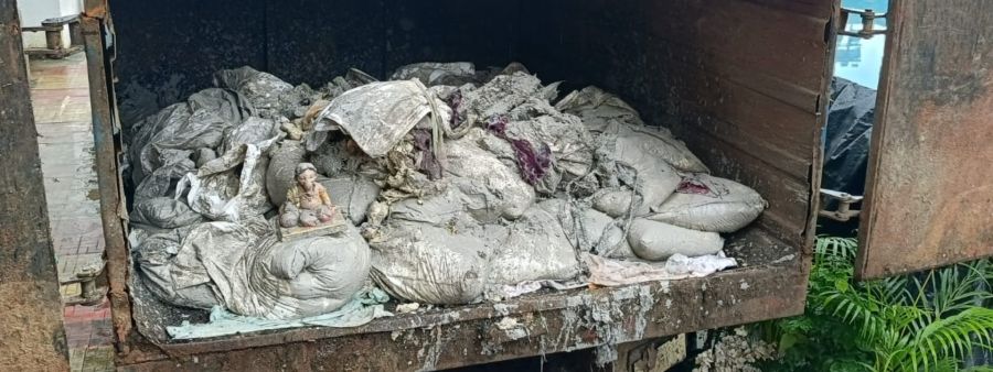 कृत्रिम तलावात विसर्जन झालेल्या मूर्ती कचऱ्याच्या गाडीत