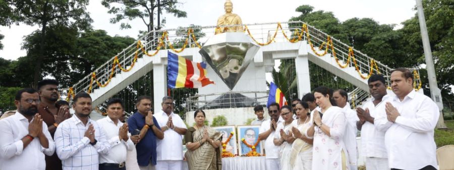 नवी मुंबई : अशोक विजयादशमी या पावन दिवशी ज्वेल ऑफ नवी मुंबई येथील तथागत भगवान गौतम बुध्द पुतळ्यासमोर ‘धम्मचक्र प्रवर्तन दिन'चे आयोजन करण्यात आले होते. या प्रसंगी उपस्थित सर्व अनुयायांनी भगवान गौतम बुध्द आणि डॉ. बाबासाहेब आंबेडकर यांच्या प्रतिमेस पुष्पांजली अर्पण करुन त्यांच्या चरणी नतमस्तक होत सामाजिक समता, बंधुता आणि न्याय या मूल्यांचा पुन्हा एकदा संकल्प केला.
