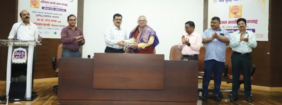 अभिजात मराठी भाषा दिनाचे औचित्य साधून नवी मुंबई महापालिकेच्या वतीने मुख्यालयातील ज्ञानकेंद्रात आयोजित केलेल्या विशेष कार्यक्रमाप्रसंगी डॉ.नरेंद्र पाठक यांनी ‘अभिजात मराठी, अभिमान मराठी’ या विषयावर उपस्थितांशी संवाद साधला.