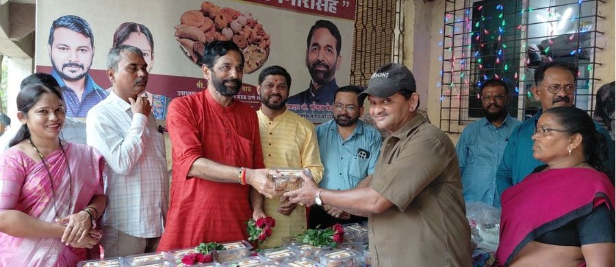 ठाणे : ‘संजय फाऊंडेशन'च्या पुढाकाराने, आमदार संजय केळकर यांनी दादोजी कोंडादेव स्टेडियम येथील कामगार बॉक्स क्रमांक-१ येथे वार्षिक ‘एक फराळ सफाई कामगारांसह दिवाळी स्नॅक्स' कार्यक्रमाचे आयोजन केले. या कार्यक्रमाचे यंदा आठवे वर्ष होते. आमदार केळकर यांनी कार्यक्रमाला उपस्थिती लावली. स्वच्छता कर्मचाऱ्यांशी मनापासून संवाद साधला, सणाच्या वेळी जेवण वाटले आणि दिवाळी आणि नवीन वर्षाच्या शुभेच्छा दिल्या.