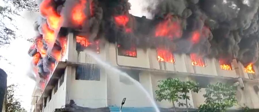 मिळालेल्या माहितीनुसार, ७ नोव्हेंबर रोजी सकाळी १० वाजताच्या सुमारास सरवली एमआयडीसी मधील मंगलमूर्ती डाईंग या तळ अधिक दोन मजल्याच्या कपडा साठवलेल्या कंपनीला भीषण आग लागली. यावेळी कंपनीत सकाळी ६० ते ७० कामगार काम करत होतेे. त्यावेळी अचानक आग लागली. कंपनीत आग लागल्याचे पाहताच सर्वच कामगारांनी कंपनीमधून बाहेर पळ काढला. यानंतर काही क्षणात आगीने संपूर्ण कंपनीचा परिसर वेढला गेला. कपड्यांचा साठा आणि रासायनिक पदार्थ असल्यामुळे आग वेगाने भडकली. आग इतकी भीषण होती की, पाहता पाहता आगीने संपूर्ण कंपनी वेढली जाऊन इमारतीचा पहिला आणि दुसरा मजला संपूर्णतः आगीच्या भक्ष्यस्थानी पडला.