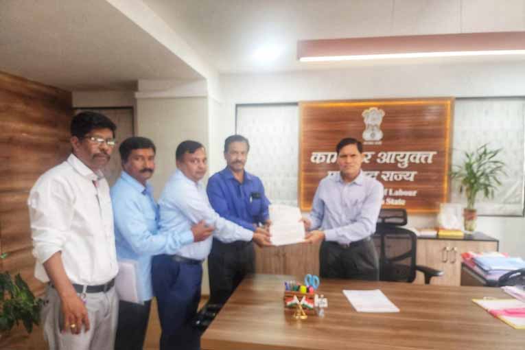 उरण : महाराष्ट्र राज्यात कामगारांच्या करिता 65 पेक्षा जास्त विविध शेड्युल नुसार किमान वेतन दर निश्चीत केले जातात. या मध्ये दर पाच वर्षांनी तत्कालीन महागाई, जीवनावश्यक वस्तूंच्या किमती,ई आधारावर किमान वेतन दर मध्ये सुधारणा करावेत असा किमान वेतन कायद्यानुसार लागु करणे बंधनकारक आहे. पण महाराष्ट्रातील 15 ऊद्योगातील किमान वेतन दर मुदत संपुनही 7/8 वर्ष सुधारित वेतन दर अद्याप पर्यंत लागु केले नाहीत. त्यामुळे विविध शेड्युल उद्योगातील हजारो कामगार सुधारित वेतन दरा पासून वंचित आहेत. शासनाने किमान वेतन सुधारणा वेळेवर न झाल्याने कामगारांची मोठ्या प्रमाणात आर्थिक कुचंबणा होते. सध्या मिळणारे उत्पन्नात किमान गरजाही पुर्ण करणे जिकिरीचे झाले आहे. त्यामुळे प्रलंबित सुधारित वेतन दर फरका सहित देण्यासाठी मागणी ठेकेदार कामगार संघ , महाराष्ट्र विज कंत्राटी कामगार संघ (संलग्न भारतीय मजदूर संघ) ने महाराष्ट्रातील लाखो कंत्राटी कामगारांच्या वतीने मा. कामगार आयुक्त महाराष्ट्र राज्य सतीश देशमुख यांना संघटनेच्या पदाधिकारी यांनी कामगार आयुक्त कार्यालय बांद्रा मुंबई येथे देवून कामगारांच्या विविध व्यथा मांडून दिलेली आहे.