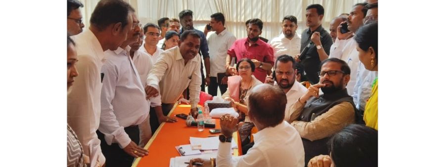 नवी मुंबई : खासदार आपल्या भेटीला या उपक्रमाअंतर्गत वाशी मधील शिवसेना मध्यवर्ती कार्यालय -खासदार जनसंपर्क कार्यालय येथे शेकडो नागरिकांनी खासदार नरेश म्हस्के यांना भेटून त्यांच्याकडे आपल्या समस्या मांडल्या. सदर समस्या खासदार म्हस्के यांनी जागच्याजागी बसून संबंधीत यंत्रणेला फोन लावून सोडविण्यावर भर दिला. यात बोनकोडे-खैरणे गावातील ग्रामस्थांच्या समस्या प्रामुख्याने मोठ्या प्रमाणात आल्याने आश्चर्य व्यक्त केले जात आहे.