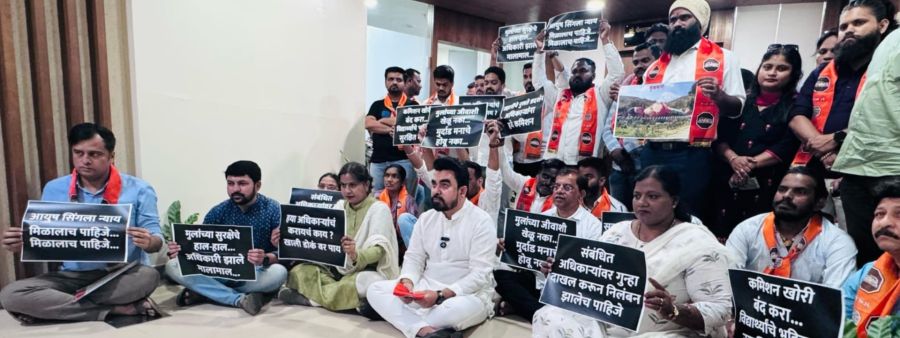 नवी मुंबई : २५ फेब्रुवारी २०२५ रोजी नवी मुंबई महानगरपालिकेच्या शिक्षण मंडळाच्या वतीने विविध पालिका शाळांच्या किमान २३०० विद्यार्थ्यांना घेवून खोपोली येथील इमॅजिका पार्क येथे सहल नेण्यात आली होती. यावेळी घणसोली शाळा क्र. ७६ येथील हिंदी माध्यमातील इयत्ता आठवीत शिकणाऱ्या आयुष सिंग वय वर्ष १४ या विद्यार्थ्याचा दुर्दैवी मृत्यू झाला. सदरच्या घटनेला नवी मुंबई मनपाचे शिक्षण उपायुक्त, शिक्षणाधिकारी तसेच संबंधित शाळेचे मुख्याध्यापक, शिक्षक व कंत्राटदार जबाबदार असल्याचे प्रथमदर्शनी दिसून येत आहे. या संदर्भात न्याय मागण्यासाठी मनसे शहर अध्यक्ष गजानन काळे यांच्या नेतृत्वाखाली मनसेच्या शिष्टमंडळाने मनपा आयुक्त कैलास शिंदे यांची भेट घेतली. तसेच दोषी शिक्षण उपायुक्त, शिक्षणाधिकारी यांचे निलंबन करण्याची मागणी केली. परंतु आयुक्त हे दोषी अधिकाऱ्यांना वाचवत असल्याचे दिसून येत होते. चौकशी समितीचे गाजर दाखवून मा आयुक्त विषय गुंडाळण्याचा प्रयत्न करत होते. एका मुलाचा पालिका वरिष्ठ अधिकाऱ्यांच्या चुकीमुळे मृत्यू झालेला असताना ही आयुक्त असंवेदनशील असल्याचे दिसून येत होते. आयुक्तांच्या अशा वर्तवणुकीवर तीव्र आक्षेप घेत मनसे कार्यकर्त्यांनी आयुक्त कार्यालयाबाहेर तब्बल 2 तास ठिय्या आंदोलन केले.