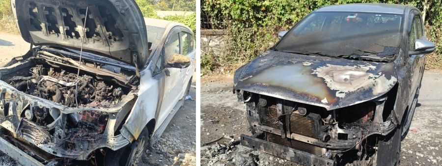 सिडको मुख्यालयासमोरील टाटा पॉवरच्या उच्च दाबाच्या वाहिन्यांखाली गेल्या काही वर्षापासून अनधिकृत पार्किंग सुरु करण्यात आली आहे. या पार्किंग लगत मोठ्या प्रमाणात गवत व झाडे झुडपे असून याच गवताला पावारी दुपारी सव्वा बारा वाजण्याच्या सुमारास आग लागली. बघता बघता ही आग त्याठिकाणी पार्किंगमध्ये उभ्या असलेल्या दोन इनोव्हा कारला लागल्याने या दोन्ही कारने पेट घेतला. या आगीची माहिती मिळताच महापालिकेच्या अग्निशमन दलाच्या जवानांनी घटनास्थळी धाव घेऊन आग आटोक्यात आणली. मात्र तोपर्यंत आगीमुळे दोन्ही कारचे मोठ्या प्रमाणात नुकसान झाले.
