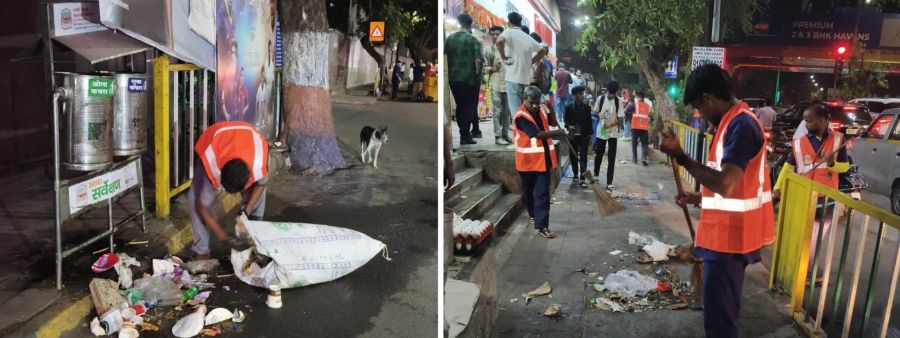 सामन्यानंतर रात्री 11 पासून पहाटे 3 वाजेपर्यंत ही विशेष साफसफाई मोहीम राबविण्यात आली. यामध्ये 40 हून अधिक स्वच्छताकर्मी सहभागी होते. या परिसरात पडलेला 1.5 टन कचरा संकलित करून घनकचरा व्यवस्थापन प्रकल्पस्थळी लगेच वाहून नेण्यात आला. यामध्ये प्लास्टिक बॉटल्स तसेच सुक्या कच-याचे प्रमाण मोठे होते. एवढा मोठा इव्हेन्ट होऊनही पहाटेच मॉर्नींग वॉकला बाहेर पडणा-या नागरिकांनी परिसर स्वच्छ पाहून समाधान व्यक्त केले.