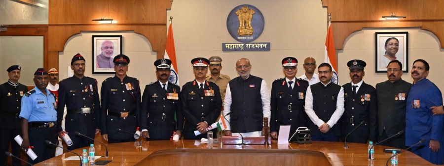 मुंबई अग्निशमन दलातील तसेच राज्याच्या इतर महापालिकांमधील ८ अग्निशमन अधिकारी आणि कर्मचाऱ्यांना यावेळी राज्यपालांच्या हस्ते गुणवत्तापूर्ण अग्निशमन सेवेकरिता जाहीर झालेले राष्ट्रपती पदक प्रदान करण्यात आले.