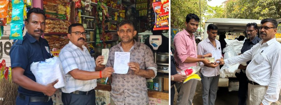 महापालिका प्लास्टिक प्रतिबंधात्मक भरारी पथकाने १७ एप्रिल रोजी कोपरखैरणे सेक्टर-१८ मधील रावराय जनरल स्टोअर्स मधून ५ किलो प्लास्टिक पिशव्यांचा साठा जप्त करुन ५ हजार रुपये तसेच ऐरोली सेक्टर-२० मध्ये महेंद्र प्रजापती यांच्याकडूनही १ किलो प्लास्टिक पिशव्या जप्त करुन ५ हजार रुपये दंडात्मक रक्कम वसूल केली.