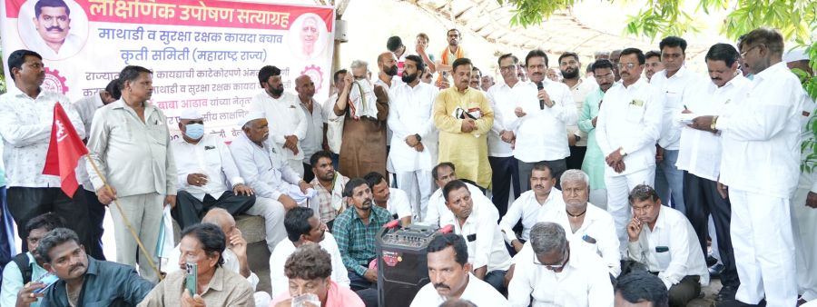 मुंबई : राज्यात माथाडी कायद्याची काटेकोरपणे अंमलबजावणी होत नसल्याच्या निषेधार्थ ‘माथाडी-सुरक्षा रक्षक कामगार बचाव कृती समिती'च्या वतीने २० मे रोजी बांद्रा-कुर्ला कॉम्प्लेक्स मधील राज्याचे कामगार आयुक्त कार्यालयासमोर ‘कृती समिती'चे अध्यक्ष तथा जेष्ठ कामगार नेते डॉ. बाबा आढाव आणि माथाडी कामगार नेते नरेंद्र अण्णासाहेब पाटील यांच्या नेतृत्वाखाली एक दिवसीय लाक्षणिक उपोषण आंदोलन करण्यात आले. या आंदोलनाची दखल शासनाकडून तत्काळ घेण्यात आल्यानंतर कामगार मंत्री आकाश फुंडकर यांच्या प्रमुख उपस्थितीत ‘कृती समिती'च्या शिष्टमंडळाची अधिकाऱ्यांसमवेत बैठक घेण्यात आली.