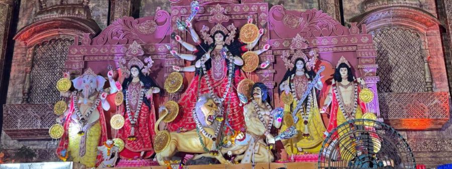या वर्षीचे प्रमुख आकर्षण म्हणजे पवित्र गंगा नदीच्या काठावरील पर्यावरणपूरक मातीपासून पश्चिम बंगालमधील कारागिरांनी घडविलेली १८ फूट उंचीची भव्य देवी दुर्गेची मूर्ती. भक्तांसाठी हे दर्शन अविस्मरणीय ठरणार आहे.