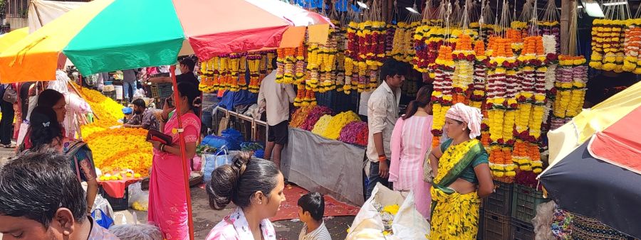 पिवळ्या, नारंगी, संकरित आणि लाल रंगाच्या झेंडूच्या विविध प्रकारांना जास्त मागणी आहे. ज्यांच्या किंमती प्रतिकिलो ८० ते १५० रुपयांपर्यंत आहेत. देवीपुजेत (देवीची पुजा) वापरले जाणारे गुलदाउदी १०० ते २०० रुपये प्रति किलो दराने विकले जात आहेत. एस्टर, मोगरा (चमेली), जय, जुई, चंपा, गुलचडी, गुलाब, सोनचाफा आणि जरबेरा सारखी इतर फुले देखील बाजारात लोकप्रिय आहेत. मोगरा, जय आणि जुई विशेषतः वेणी आणि गजरा (केसांसाठी फुलांच्या माळा) बनवण्यासाठी मागणी करतात. झेंडूच्या माळांची किंमत प्रतिमीटर सुमारे १०० रुपये आहे. तर सजावटीचे तोरण (दारावर लटकवण्याचे) ५० ते १०० रुपये पर्यंत आहे. बेलपत्र (बेलाची पाने), तुळशी आणि दुर्वा (पवित्र गवत) सारख्या आवश्यक पुजा वस्तू १० ते २० रुपये किंमतीत विकल्या जात आहेत.