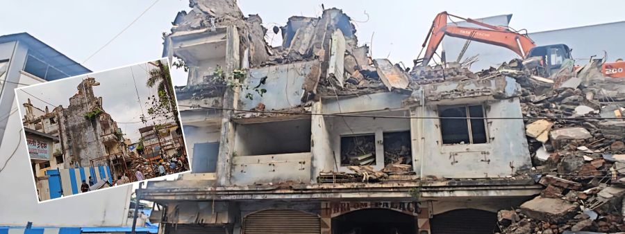 धोकादायक इमारतीचे बांधकाम तोडताना इमारतीचा भाग कोसळला