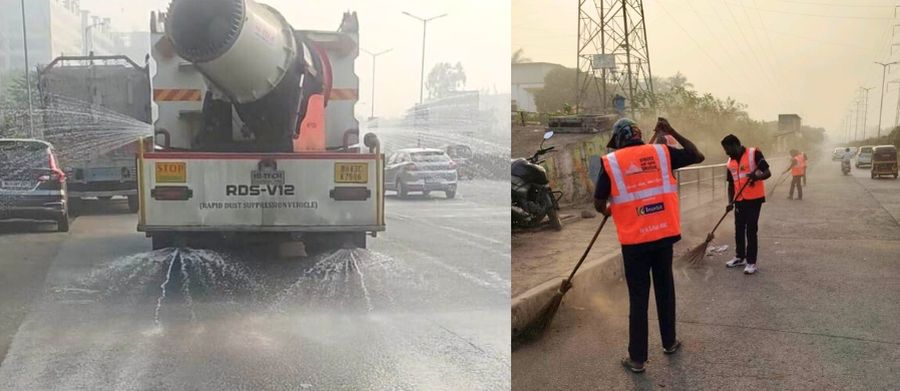 हिवाळा कालावधी आणि वायू प्रदुषणामुळे हवेतील धूरक्याचे प्रमाण वाढलेले दिसत असून, त्यावर नियंत्रणासाठी मुख्य रहदारीचे रस्ते आणि एमआयडीसी क्षेत्रातील रस्ते यांच्या सखोल स्वच्छतेकडे बारकाईने लक्ष दिले जात आहे. त्या अनुषंगाने आयुक्त डॉ.कैलास शिंदे यांनी आढावा बैठकीत दिलेल्या निर्देशानुसार धुळीचे प्रमाण कमी करण्यासाठी सर्वच विभागात सखोल स्वच्छता मोहीमा हाती घेण्यात आल्या असून त्यासोबत बांधकाम साईट, दगडखाणी व सिमेंट निर्मितीचे आरएमसी प्लान्ट या ठिकाणच्या धूळ प्रदुषणावर नियंत्रण ठेवण्यासाठी विभाग कार्यालय पातळीवर विभाग अधिकारी यांच्या नियंत्रणाखाली दक्षता पथके काय्रान्वित करण्यात आली आहेत. त्यामध्ये अभियंते, स्वच्छता अधिकारी आणि निरीक्षक यांचा समावेश करण्यात आला आहे.