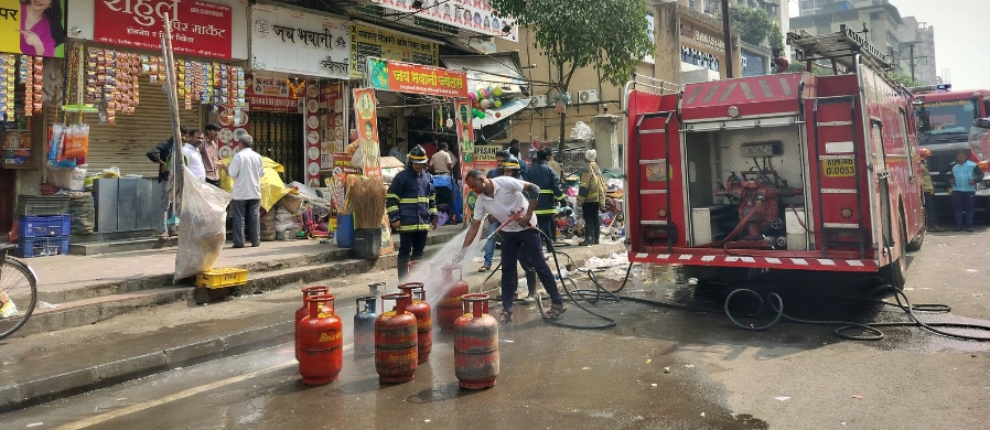 नागरिकांनीही गॅस गळतीचा वास येताच तात्काळ संबंधित यंत्रणांना कळवावे, असे आवाहन अग्निशमन केंद्राकडून करण्यात आले आहे. अंबिका स्टीलमध्ये सिलेंडरचा स्फोट झाल्यावर दुकानातील २ सिलेंडरचे झाकण उडून गेल्याचे अग्निशमन जवानांच्या निदर्शनास येताच जवानांनी गॅस गळती रोखण्यासाठी सिलेंडर बाहेर काढून त्यावर पाण्याची फवारणी करताना दिसून आले.