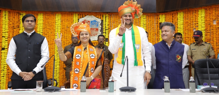 दरम्यान, महापौर आणि उपमहापौरपदाच्या निवडीची घोषणा झाल्यानंतर ठाणे महापालिका आयुक्त सौरभ राव यांनी नवनिर्वाचित महापौर शर्मिला पिंपळोलकर आणि उपमहापौर कृष्णा पाटील यांचे तुळशीचे रोप देऊन अभिनंदन केले.
