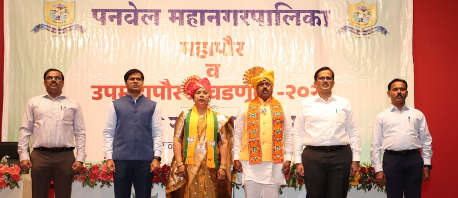 पनवेल : पनवेल महापालिका महापौर आणि उपमहापौर पदासाठी निवडणूक १० फेब्रुवारी रोजी पार पडली. त्याअनुषंगाने पनवेल महापालिकेची विशेष सर्वसाधारण सभा पीठासीन अधिकारी तथा ठाणे जिल्हाधिकारी डॉ. श्रीकृष्ण पांचाळ यांच्या अध्यक्षतेखाली आद्य क्रांतीवीर वासुदेव बळवंत फडके नाट्यगृह येथे आयोजित करण्यात आली होती.