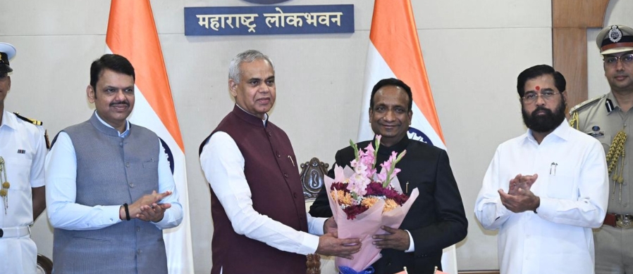 मुंबई : लोकभवन येथील कॉन्फरन्स सभागृहात राज्यपाल आचार्य देवव्रत यांनी ‘महाराष्ट्र लोकसेवा आयोग'च्या अध्यक्षपदाची विवेक लक्ष्मण भीमनवार यांना पद आणि गोपनीयतेची शपथ दिली. यावेळी मुख्यमंत्री देवेंद्र फडणवीस, उपमुख्यमंत्री एकनाथ शिंदे प्रमुख उपस्थित होते.