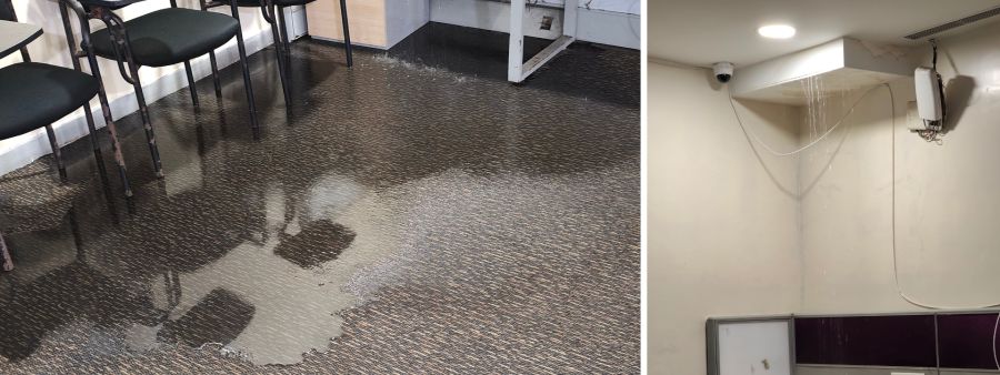 इमारतीतील पत्रकार कक्षात बरसू लागल्या पाऊसधारा