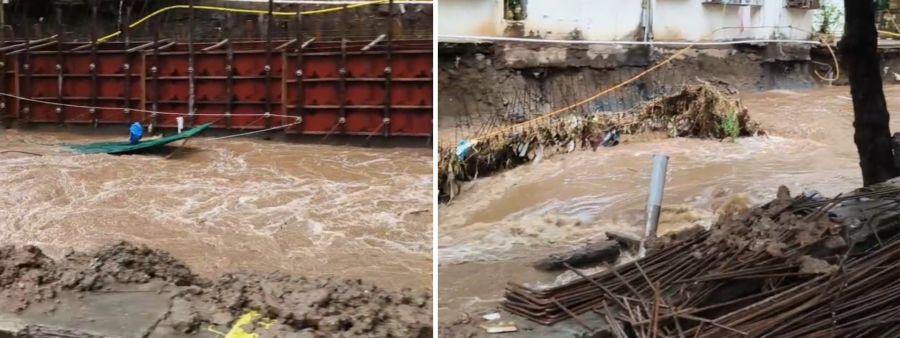 २५ आणि २६ मे रोजी झालेल्या पावसामुळे येथे नाला दुथडी भरुन वाहत होते. नाल्यात पाणी तुंबून नये म्हणून महापालिकेने जेसीबीच्या मदतीने कचरा काढण्याचे काम सुरु होते. दुसरीकडे पावसाळा सुरु होवून देखील संरक्षण भिंतीचे काम पूर्ण न झाल्यामुळे रहिवाशांमध्ये भितीचे वातावरण पसरले होते. या विषयी महापालिकेचे मुख्य अभियंता संजय कटेकर यांच्याशी संपर्क केला असता तो होवू शकला नाही.