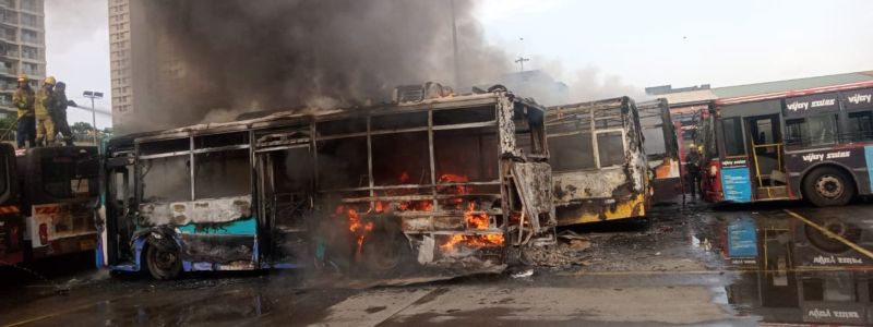 घणसोली डेपोत आग; ४ एनएमएमटी बस जळून खाक