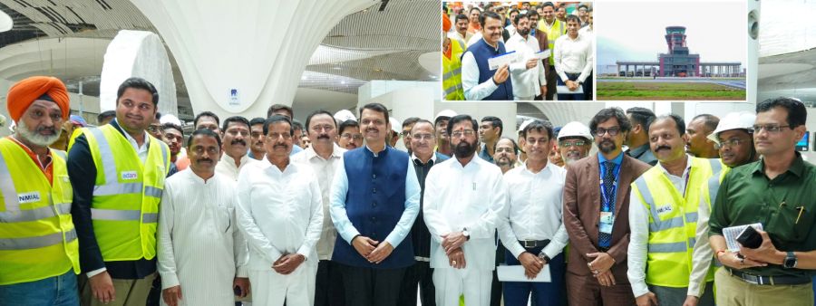 मुख्यमंत्री देवेंद्र फडणवीस आणि उपमुख्यमंत्री एकनाथ शिंदे यांच्यासह इतर सर्व मान्यवरांनी नवी मुंबई आंतरराष्ट्रीय विमानतळाच्या प्रगतीपथावर असलेल्या कामांची प्रत्यक्ष पाहणी केली. ही पाहणी करताना त्यांनी विशेषतः विमान प्रवाशांना देण्यात येणाऱ्या सोयीसुविधांचा आढावा घेतला.