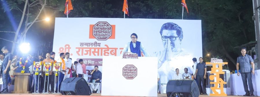 मिरा-रोड येथे पोलिसांनी मराठी भाषिकांना मोर्चासाठी न दिलेली परवानगी, त्यानंतर निघालेला भव्य मोर्चा, विधानसभा अधिवेशनासह संपूर्ण महाराष्ट्रात उठलेल्या वादळानंतर नित्यानंद नगर भागातील ‘महाराष्ट्र नवनिर्माण सेना'च्या विधानसभा क्षेत्र कार्यालयाच्या उद्घाटनाप्रसंगी १८ जुलै रोजी संध्याकाळी झालेल्या जाहीर सभेत राज ठाकरे बोलत होते.