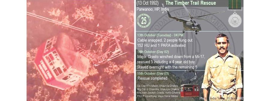 १४ ऑक्टोबर! मुख्य हेलिकॉप्टरचे सारथ्य ग्रुप कॅप्टन फली एच.मेजर करीत होते. (पुढे हे आडनावाने मेजर असलेले साहेब वायूसेनेचे प्रमुख होऊन निवृत्त झाले) सर्व टीमने घटनास्थळाचे,त्या ट्रॉलीचे काळजीपूर्वक हवाई- निरीक्षण केले. ती ट्रॉली थोडीशी जरी मागे खेचण्याचा प्रयत्न केला तर, तिची चाके एकदम नादुरूस्त झाल्याने, खाली दरीत कोसळण्याची शंभर टक्के शक्यता दिसली. हेलिकॉप्टर जमिनीवर येताच मेजर क्रेस्टो साहेब आणि ग्रुप कॅप्टन फली साहेब यांनी एक धाडसी योजना आखली! मेजर क्रेस्टो साहेब हेलिकॉप्टर मधून दोरीच्या साहाय्याने ट्रॉलीच्या टपावर उतरतील..टपावरी इमर्जनसी झडप उघडून ट्रॉलीतील एका एका प्रवाशाला वर खेचतील आणि त्याला दोरी बांधलेल्या खुर्चीत बसवून हेलिकॉप्टरमध्ये खेचून घेतले जाईल....किती सोपे वाटते ना हे वाचायला?
