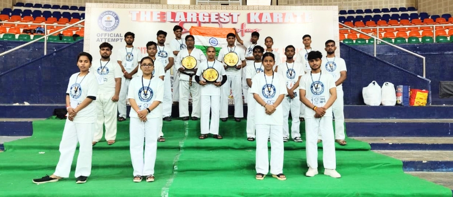 भिवंडी : २६ एप्रिल रोजी हैदराबाद येथील गाचीबौली इंडोर स्टेडियममध्ये ‘व्हिजन मार्शल आर्टस् ॲकॅडमी'चे अध्यक्ष मशेट्टी विट्टल यांच्या नेतृत्वाखाली गिनीज वर्ल्ड रेकॉर्डस् अधिकृत करणारे सर्वात मोठे कराटे प्रदर्शन पार पडले. यावेळी प्रमुख पाहुणे म्हणून उपस्थित असलेले ३० वेळचे गिनीज वर्ल्ड रेकॉर्डधारक ग्रँडमास्टर एम. जयंथ रेड्डी यांनी सहभागींचे अभिनंदन केले.