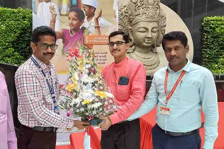 नवी मुंबई : महाराष्ट्र शासनाच्या मराठी भाषा विभागामार्फत दिनांक १४ ते २८ जानेवारी या कालावधीत मराठी भाषा संवर्धन पंधरवडा साजरा करण्यात येत आहे. त्या निमित्ताने शासनाच्या विविध प्रशासकीय विभागांमध्ये काम करत असताना मराठी भाषेच्या प्रचार व प्रसारासाठी विशेष योगदान देणा-या अधिकारी व कर्मचा-यांचा सत्कार सोहळा गुरुवार दिनांक २० जानेवारी २०२२ रोजी मंत्रालयात आयोजित करण्यात आला होता. मंत्रालयाच्या त्रिमुर्ती या मुख्य प्रांगणामध्ये सकाळी ११ वाजता आयोजित करण्यात आलेल्या हया कार्यक्रमामध्ये सार्वजनिक आरोग्य विभागाच्या राष्ट्रीय आरोग्य अभियान कार्यालयातील कक्ष अधिकारी वैभव मोहन पाटील (नवी मुंबई) यांचादेखील सत्कार मराठी भाषा विभागाचे प्रधान सचिव डॉ. भूषण गगराणी, सहसचिव श्री मिलिंद गवारे यांच्या शुभहस्ते करण्यात आला.