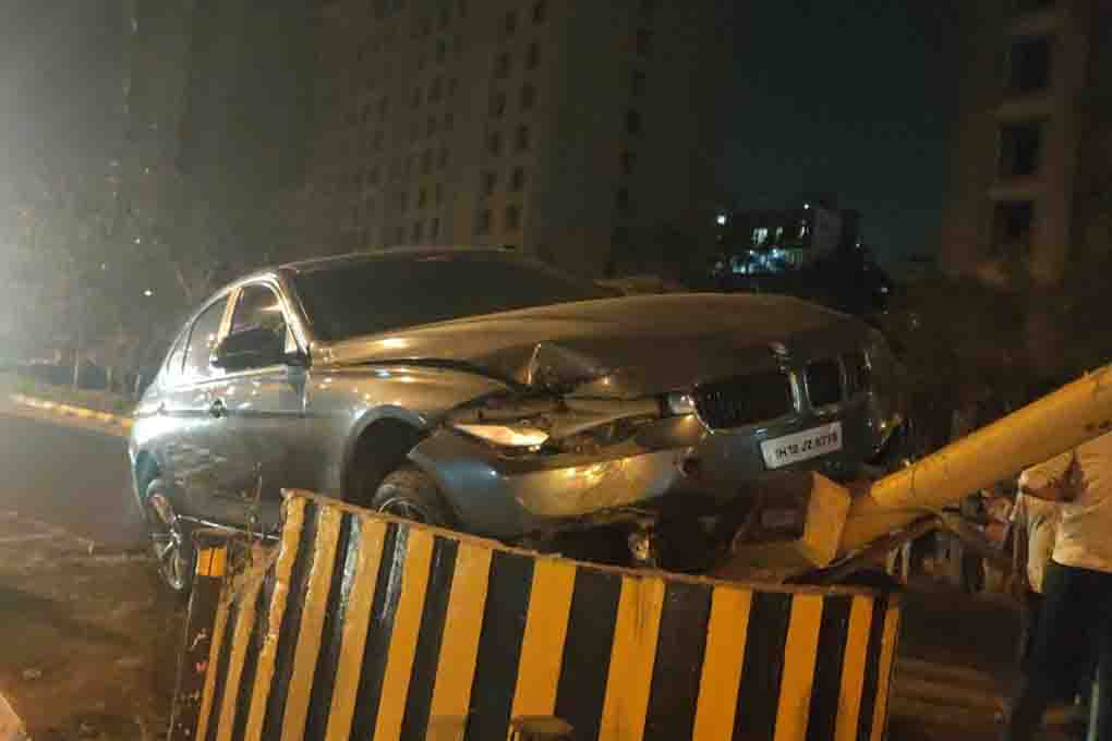 या घटनेतील बीएमडब्ल्यु कार चालक हा बुधवारी रात्री 9 वाजण्याच्या सुमारास नेरुळ येथून पामबीच मार्गे सीवूड्स येथे जात होता. तेथुन तो कार मालकाला घेऊन सातारा येथे जाणार होता. मात्र यावेळी भरधाव बीएमडब्ल्यू कारवरील चालकाचे नियंत्रण सुटल्याने सदरची कार पामबीच मार्गावरील अक्षर चौकात डाव्या बाजुला असलेल्या रस्ता दुभाजकावर चढली. सुदैवाने कार चालक या अपघातातून बचावला. त्यानंतर कार चालकाने कार त्याच ठिकाणी सोडून त्याठिकाणावरुन पलायन केले. या अपघातामुळे सदर चौकात काही काळ वाहतुक कोंडी झाली होती. या अपघाताची माहिती मिळताच सीवूड्स वाहतूक शाखेच्या पोलिसांनी घटनास्थळी धाव घेऊन अपघातग्रस्त बीएमडब्ल्यु कार बाजुला काढली. त्यानंतर एनआरआय पोलिसांनी कार चालकाविरोधात गुन्हा दाखल करुन त्याचा शोध सुरु केला आहे.