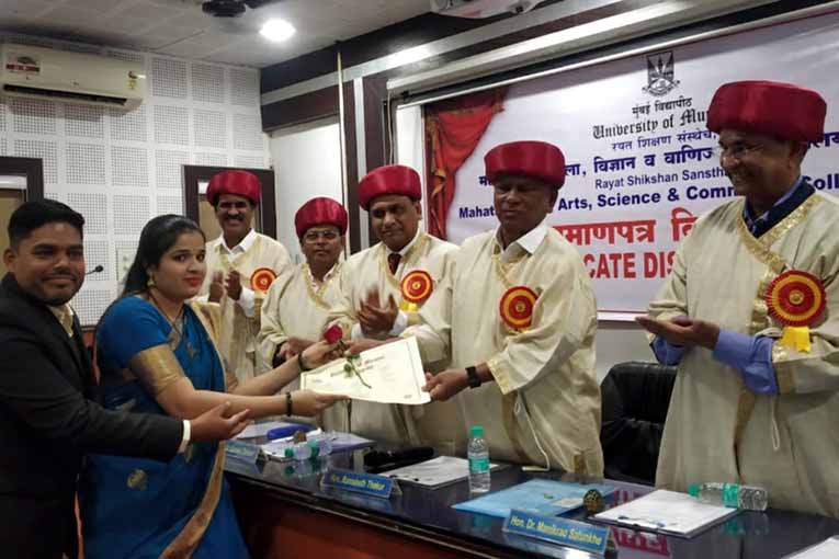 पनवेल : रयत शिक्षण संस्थेच्या पनवेल येथील महात्मा फुले कला विज्ञान व वाणिज्य महाविद्यालयामध्ये शनिवार, दिनांक १२ मार्च पदवीदान समारंभ संपन्न झाला. या समारंभाच्या अध्यक्षस्थानी रयत शिक्षण संस्थेच्या मॅनेजिंग कौंसिलचे सदस्य रामशेठ ठाकूर होते. तर भारती विद्यापीठाचे कुलगुरू डॉ. माणिकराव साळुंखे प्रमुख पाहुणे म्हणून उपस्थित होते. याप्रसंगी पाहुण्यांच्या हस्ते महाविद्यालयातील पदवीधर व पदव्युत्तर विद्यार्थ्यांना पदवी प्रमाणपत्र प्रदान करण्यात आली. उत्साहपूर्ण वातावरणामध्ये संपन्न झालेल्या सोहंळ्याच्या सुरुवातीस महाविद्यालयाचे प्राचार्य डॉ. गणेश ठाकूर यांनी उपस्थितांचे स्वागत केले व आपले मनोगत व्यक्त केले.