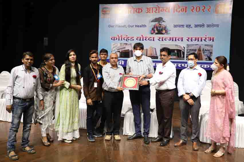 नवी मुंबई : कोव्हीड विरोधात आपण लढाई लढलो त्यामुळे कोव्हीड योध्दा असे म्हटले जाते. या काळात प्रत्येक घटकाने अत्यंत जबाबदारीने व झोकून देऊन काम केले, त्या कामाबद्दल कृतज्ञता व्यक्त करण्यासाठी कोव्हीड योध्दा सन्मान करण्यात येत असल्याचे महापालिका आयुक्त अभिजीत बांगर यांनी सांगितले. जागतिक आरोग्य दिनाचे औचित्य साधून विष्णुदास भावे नाट्यगृहात संपन्न झालेल्या विशेष समारंभात महानगरपालिकेच्या विविध विभागातील अधिकारी, कर्मचारी समुहांचा कोव्हीड प्रभावित काळात केलेल्या समर्पित कामाबद्दल कोव्हीड योध्दा सन्मान करण्यात आला. त्याप्रसंगी आयुक्तांनी महानगरपालिकेच्या विविध विभागांप्रमाणेच या लढ्यात सेवाभावी वृत्तीने वेगवेगळ्या प्रकारचे मदतकार्य करणा-या सेवाभावी संस्था, लोकप्रतिनिधी, प्रसारमाध्यमे अशा विविध घटकांचे महत्वाचे योगदान असल्याचा उल्लेख करीत त्यांचेही कृतज्ञतापूर्वक आभार मानले.