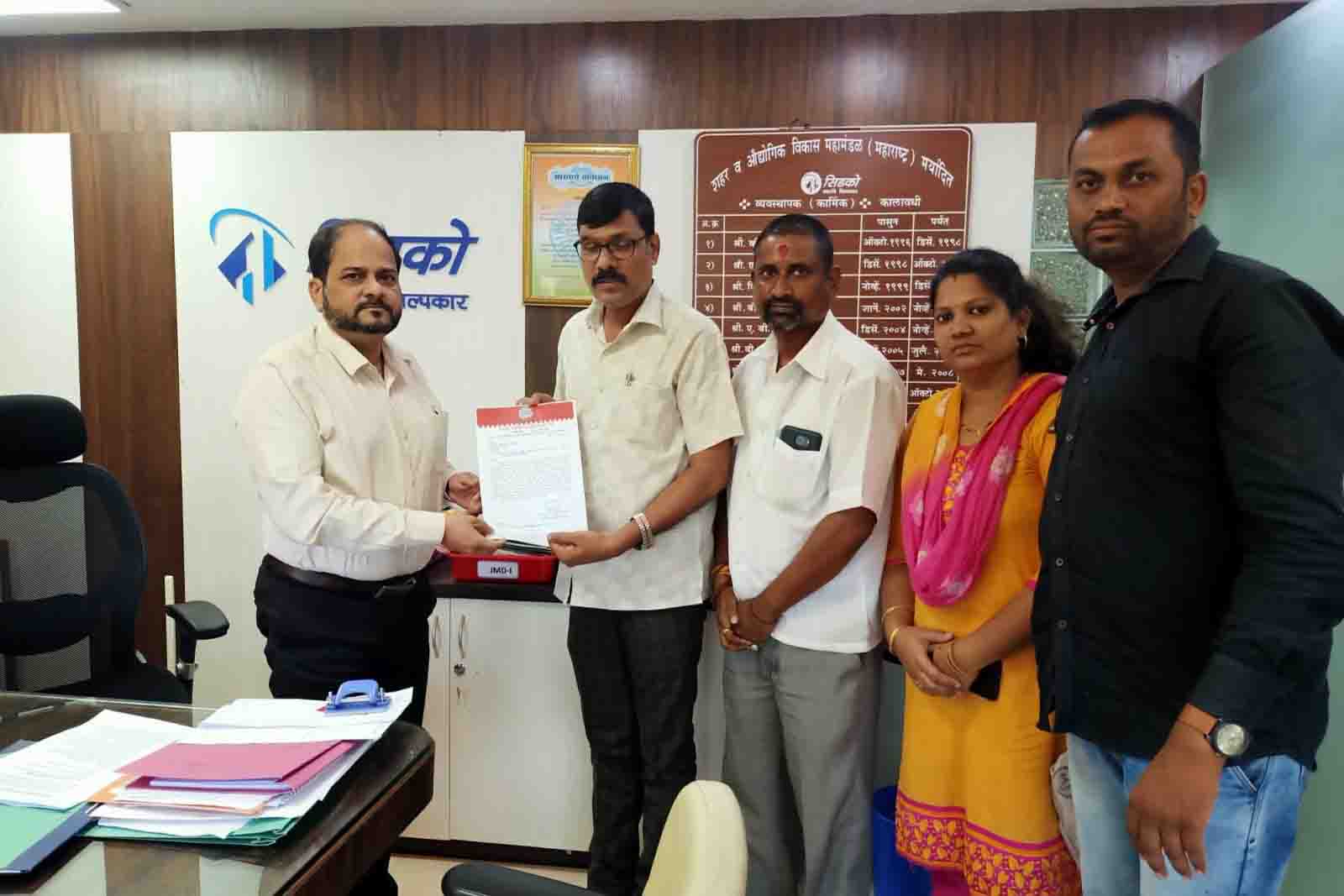 नवी मुंबई-: सिडको वसाहतीत लाभार्थी माथाडी कामगारांना राखीव कोट्यातील घरे लागली आहेत. मात्र यातील गणेश माने या कामगाराने आय टी कागदपत्रे वेळेवर सादर न केल्याने त्यास सिडकोने घरापासून वंचित ठेवले आहे. त्यामुळे या माथाडी कामगाराला लवकरात लवकर घरे द्यावी अशी मागणी महाराष्ट्र नवनिर्माण कामगार सेना उपाध्यक्ष बाळासाहेब शिंदे यांनी सिडकोचे व्यवस्थापकीय संचालक आणि जनरल मॅनेजर फैयाज खान यांचेकडे केली आहे