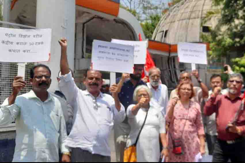 नवी मुंबई : पेट्रोल, डिझेल व गॅस सिलेंडरची दरवाढ मागे घेण्याबरोबरच महागाई कमी करण्यात यावी या मागण्यांसाठी मार्क्सवादी कम्युनिस्ट पक्षाच्या नवी मुंबई तालुका कमिटी तर्फे बुधवारी बेलापूर रेल्वे स्टेशन लगतच्या पेट्रोल पंपावर जोरदार निदर्शने करण्यात आली. यावेळी महागाई विरोधातील पत्रकाचे वाटप देखील करण्यात आले.