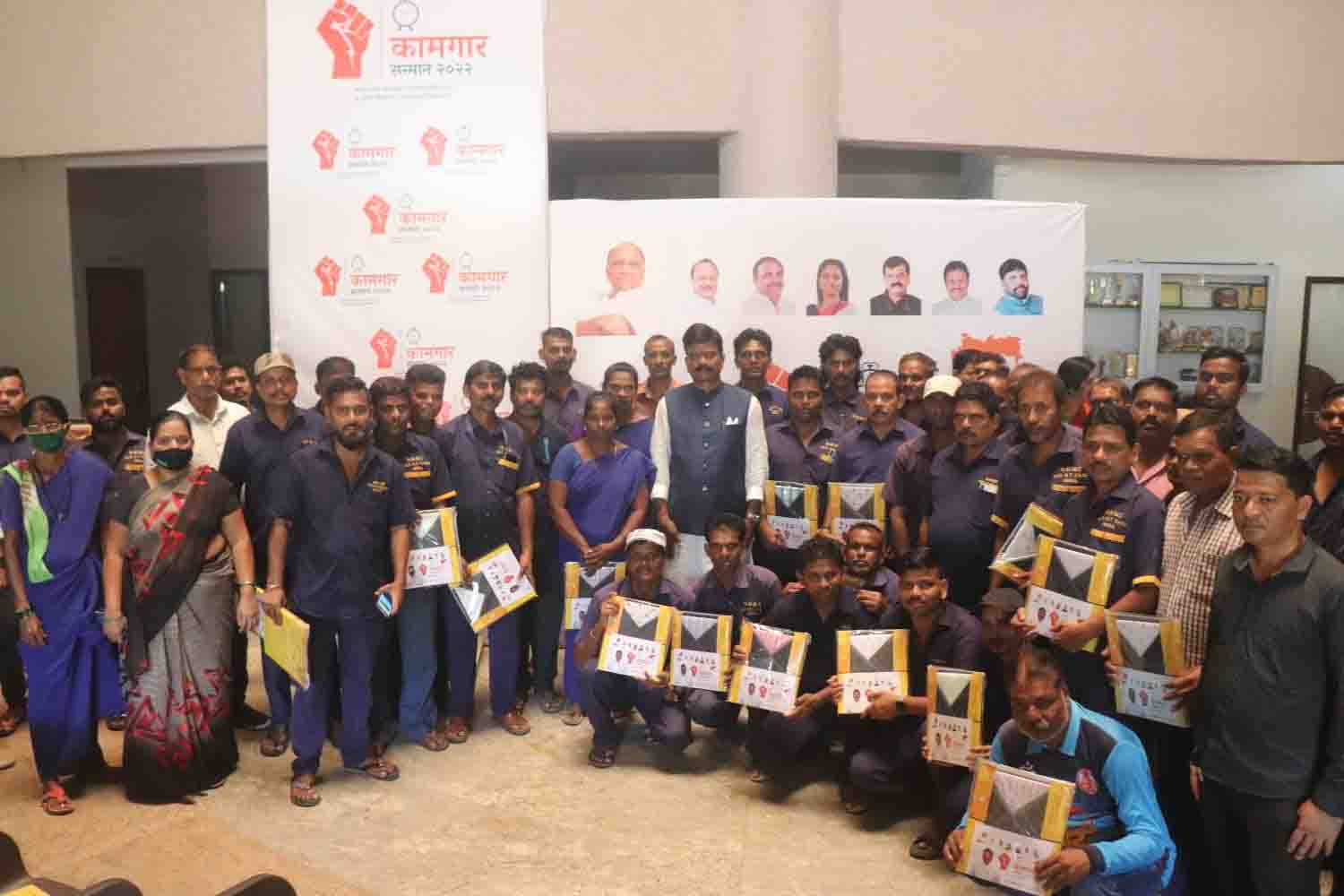 नवी मुंबई-: श्रमाला लाभो ' मोल सर्वदा, अन् घामाला मिळो दाम,या हातांना मिळो काम, अन् कामाला मिळो सन्मान ' या ब्रिदवाक्याला अनुसरून १ मे महाराष्ट्र दिन व कामगार दिनाचे औचित्य साधून, प्रदेश उपाध्यक्ष, राष्ट्रवादी काँग्रेस, महाराष्ट्र राज्य नामदेव भगत यांच्या माध्यमातून 'कामगार सन्मान २०२२' या कार्यक्रमाचे आयोजन करण्यात आले होते या कार्यक्रमांतर्गत ६० स्वच्छता कर्मचाऱ्यांचा कपड्यांचे जोड-भेट वस्तू देऊन सत्कार करण्यात आले.