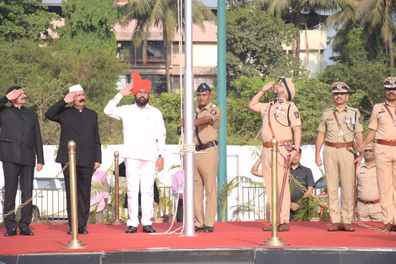 महाराष्ट्र दिनानिमित्त साकेत येथील पोलीस मैदानात आयोजित मुख्य शासकीय समारंभात पालकमंत्री श्री. शिंदे यांच्या हस्ते ध्वजवंदन करण्यात आले. यावेळी जिल्हाधिकारी राजेश नार्वेकर, पोलीस आयुक्त जय जित सिंह, जिल्हापरिषदेचे मुख्य कार्यकारी अधिकारी डॉ. भाऊसाहेब दांगडे, जिल्हा परिषदेच्या अध्यक्षा पुष्पा पाटील, उपाध्यक्ष सुभाष पवार, खासदार राजन विचारे, आमदार रविंद्र फाटक, कोकण परिमंडळाचे विशेष महानिरीक्षक संजय मोहिते, पोलीस अधीक्षक डॉ. विक्रम देशमाने आदी यावेळी उपस्थित होते.