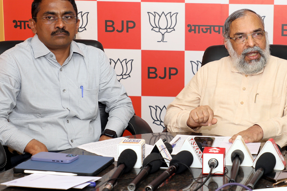 पनवेल : राष्ट्रवादीच्या उन्मादी कार्यकर्त्यांनी पोलिसांना वेठीस धरून सुरू केलेल्या गुंडगिरीमुळे शांततेने जगण्याचा जनतेचा हक्क संकटात आला आहे, असा आरोप भाजपचे प्रदेश उपाध्यक्ष आणि मुख्य प्रवक्ते माधव भंडारी यांनी करून विषारी आणि हिंसक वातावरण निर्माण करणाऱ्या शक्तींविरोधात भूमिका घेण्याची वेळ जनतेवर आली आहे, असे सूतोवाच आज (मंगळवार, दि. १७ मे) पनवेल येथे आयोजित करण्यात आलेल्या पत्रकार परिषदेत केले. पनवेल तालुका व शहर भाजपच्या मध्यवर्ती कार्यलयात झालेल्या या पत्रकार परिषदेस भाजपचे उत्तर रायगड जिल्हाध्यक्ष आमदार प्रशांत ठाकूर, जिल्हा संघटन सरचिटणीस अविनाश कोळी, जिल्हा प्रसिद्धी प्रमुख भरत जुमलेदार उपस्थित होते.