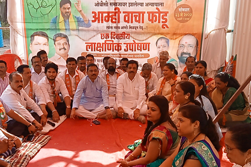 राज्यातील महाविकास आघाडी सरकारने ओबीसी समाजाच्या आरक्षणाची राजकीय हत्या करून ओबीसी समाजास दडपण्याचे षडयंत्र रचले आहे. त्या निषेधार्थ तसेच मध्य प्रदेश सरकारप्रमाणे महाराष्ट्र सरकारला लोकशाही मार्गाने ओबीसींचे राजकीय आरक्षण पुनर्स्थापित करण्यास भाग पाडण्यासाठी महाराष्ट्राचे माजी मुख्यमंत्री तथा विधानसभा विरोधी पक्षनेते देवेंद्र फडणवीस, भाजप प्रदेशाध्यक्ष चंद्रकांत पाटील, ओबीसी मोर्चा प्रदेशाध्यक्ष आमदार योगेश टिळेकर यांच्या मार्गदर्शनाखालीे तसेच भाजपचे उत्तर रायगड जिल्हाध्यक्ष आमदार प्रशांत ठाकूर यांच्या नेतृत्वाखाली भाजप ओबीसी मोर्चातर्फे आज (दि. २३) पनवेल प्रांत कार्यालय येथे एकदिवसीय लाक्षणिक उपोषण करण्यात आले. तसेच ओबीसी आरक्षण लागू करण्यासाठी राज्य सरकारने तातडीने पाऊले उचलावीत, असे निवेदन यावेळी प्रांत अधिकारी मार्फत राज्य सरकारला देण्यात आले.