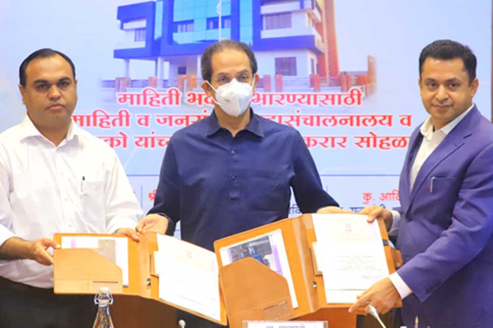 नवी मुंबई : नवी मुंबईतील नेरुळ येथे सिडकोच्या वतीने उभारण्यात आलेल्या माहिती भवन इमारतीच्या हस्तांतरणाचा सामंजस्य करार माहिती व जनसंपर्क महासंचालनालय आणि सिडको यांच्यात मंगळवारी मुख्यमंत्री उद्धव ठाकरे यांच्या प्रमुख उपस्थितीत करण्यात आला. सह्याद्री अतिथीगृहात पार पडलेल्या या कार्यक्रमास माहिती व जनसंपर्क राज्यमंत्री आदिती तटकरे, मुख्य सचिव मनुकुमार श्रीवास्तव, मुख्यमंत्र्यांचे प्रधान सचिव विकास खारगे, माहिती व जनसंपर्क विभागाचे प्रधान सचिव दीपक कपूर, सिडकोचे व्यवस्थापकीय संचालक डॉ. संजय मुखर्जी आदी मान्यवर उपस्थित होते.