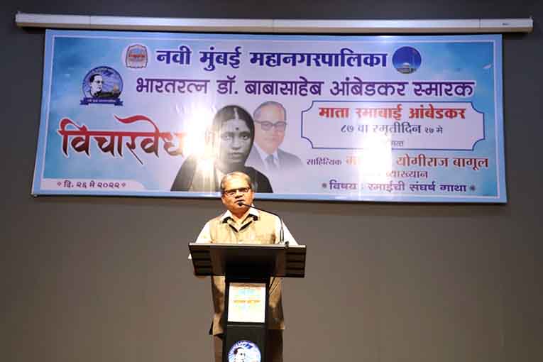 नवी मुंबई महानगरपालिकेच्या वतीने ऐरोली येथील भारतरत्न डॉ. बाबासाहेब आंबेडकर स्मारक सभागृहात माता रमाबाई भीमराव आंबेडकर यांच्या 87 व्या स्मृतिदिनाचे औचित्य साधून “विचारवेध” शिर्षकांतर्गत ‘रमाईंची संघर्ष गाथा’ या विषयावर साहित्यिक योगीराज बागूल यांचे विशेष व्याख्यान आयोजित करण्यात आले होते.