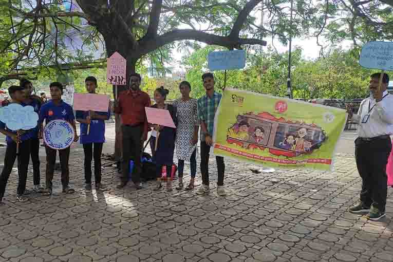 नवी मुंबई : जागतिक बाल कामगार विरोधी दिनानिमित्त तसेच बाल मजुरी निर्मूलन सफ्ताहाअंतर्गत युवा नवी मुंबई चाईल्ड लाईन व जिल्हा महिला आणि बाल विकास विभाग यांच्या संयुक्तविद्यमाने रविवारी वाशी रेल्वे स्टेशनच्या परिसरात जनजागृती कार्यक्रमाचे आयोजन करण्यात आले होते. यावेळी बाल अधिकार संघर्ष संघटनेच्या प्रतिनिधींनी बाल मजुरी या विषयाला घेऊन एक `नाटू ' नावाचे पथनाट्य सादर केले.
