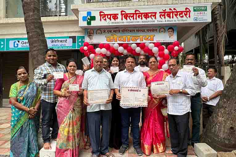 पनवेल : विरोधी पक्ष नेते प्रितम म्हात्रे यांचे सहकारी मित्र दिपक कुदळे यांनी उपजिल्हा रुग्णालय समोर सुरू केलेल्या दीपक क्लिनिकल लॅबोरेटरी शाखा नं.२ चे उदघाटन जेष्ठ नागरिकांच्या हस्ते करण्यात आले. तसेच जे.एम.म्हात्रे चॅरिटेबल संस्थेच्या माध्यमातून सुरू केलेल्या सेवाकार्डचे लोकार्पण विरोधी पक्ष नेते प्रितम म्हात्रे यांच्या हस्ते करण्यात आले. या सेवाकार्डच्या माध्यमातून दिपक क्लीनिकल लॅबच्या अंतर्गत ज्या वैद्यकीय तपासणी करण्यात येतात त्या सर्वांमध्ये सवलत देण्यात येणार आहे जेणेकरून सर्वसामान्य नागरिकांना सोयीचे होईल.