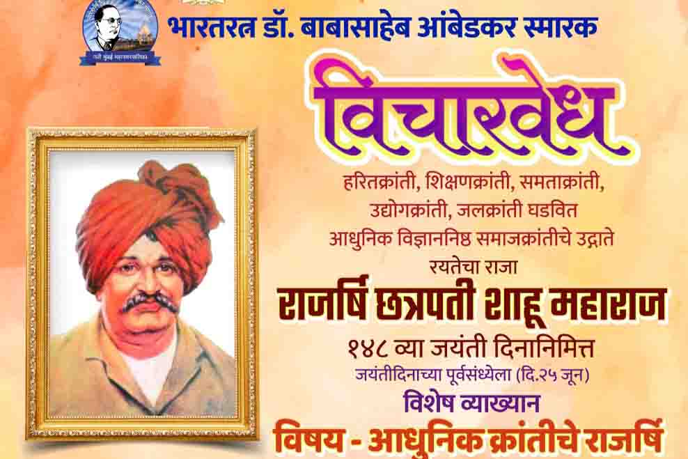 हरितक्रांती, शिक्षणक्रांती, समताक्रांती, उद्योगक्रांती, जलक्रांती, श्वेतक्रांती घडवित आधुनिक विज्ञाननिष्ठ समाजक्रांतीचे उद्गाते असणा-या राजर्षि छत्रपती शाहू महाराज यांच्या सर्वस्पर्शी कार्याला अभिवादन करण्यासाठी व त्यांचे विविध क्षेत्रातील अतुलनीय कार्य जाणून घेण्यासाठी दिनांक 25 जून 2022 रोजी, सेक्टर 15 ऐरोली येथील भारतरत्न डॉ बाबासाहेब आंबेडकर स्मारक सभागृहात सायं. 7 वा. आयोजित ‘आधुनिक क्रांतीचे राजर्षि’ या व्याख्यानाप्रसंगी नागरिकांनी मोठया संख्येने उपस्थित रहावे असे आवाहन महापालिका आयुक्त श्री. अभिजीत बांगर यांच्या वतीने करण्यात येत आहे.